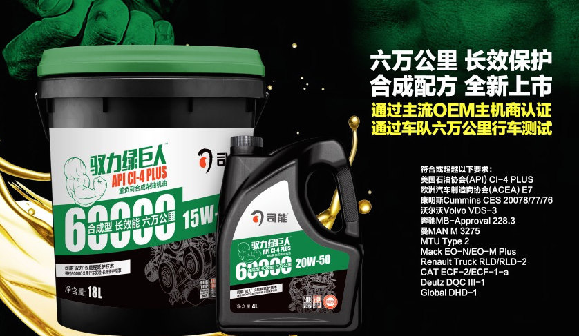 良好的潤滑可幫助零部件減少摩擦損失,讓運輸設(shè)備長久、高效運轉(zhuǎn)。馭力綠巨人?獨有司能長壽命延護(hù)技術(shù),使用路博潤最新添加劑專利配方、韓國進(jìn)口合成型二類基礎(chǔ)油及三類加氫基礎(chǔ)油互配,滿足國內(nèi)嚴(yán)苛路況,可達(dá)60000公里的換油周期,目前已通過主流OEM主機(jī)商認(rèn)證及車隊60000公里行車測試,讓卡友兄弟穩(wěn)操方向盤,輕松征戰(zhàn)60000公里!