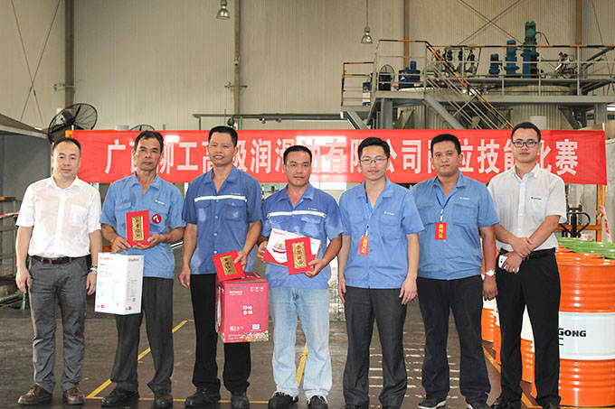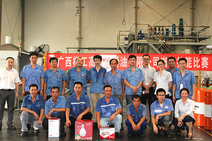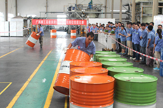 ? ? ? ? 2014年6月26日,廣西柳工高級(jí)潤(rùn)滑油有限公司崗位技能比賽在調(diào)合廠正式拉開序幕。隨著裁判清脆的一聲哨響,200L油桶轉(zhuǎn)移比賽正式開始。“加油,加油!”的助威聲在調(diào)合廠車間此起彼伏,經(jīng)過緊張激烈的角逐,譚定羽獲得第一名,謝永華、李占擴(kuò)分別獲得第二、三名。