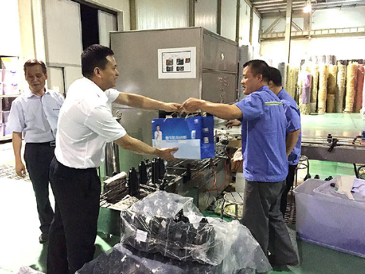 ? ? ? ?何景奇副書記拉著員工的手深情地說到“真的辛苦你們了!正是由于你們的無私奉獻才有了高潤的發(fā)展,謝謝你們!”何書記還強調(diào),希望大家在趕生產(chǎn)任務的同時,要注意自我調(diào)節(jié),緊記安全生產(chǎn),保證產(chǎn)品質量,為公司的發(fā)展在不同崗位貢獻出自己的力量。員工們對公司領導的及時慰問感到十分鼓舞,同時表示會按時保質完成生產(chǎn)任務。