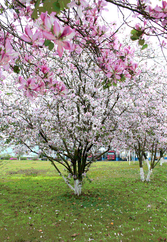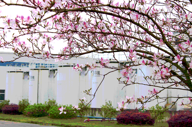 司能石油化工有限公司廠區(qū)內(nèi)的紫荊花一夜之間競(jìng)相怒放,真有一番“夜來風(fēng)雨聲,花‘開’知多少”的情趣!